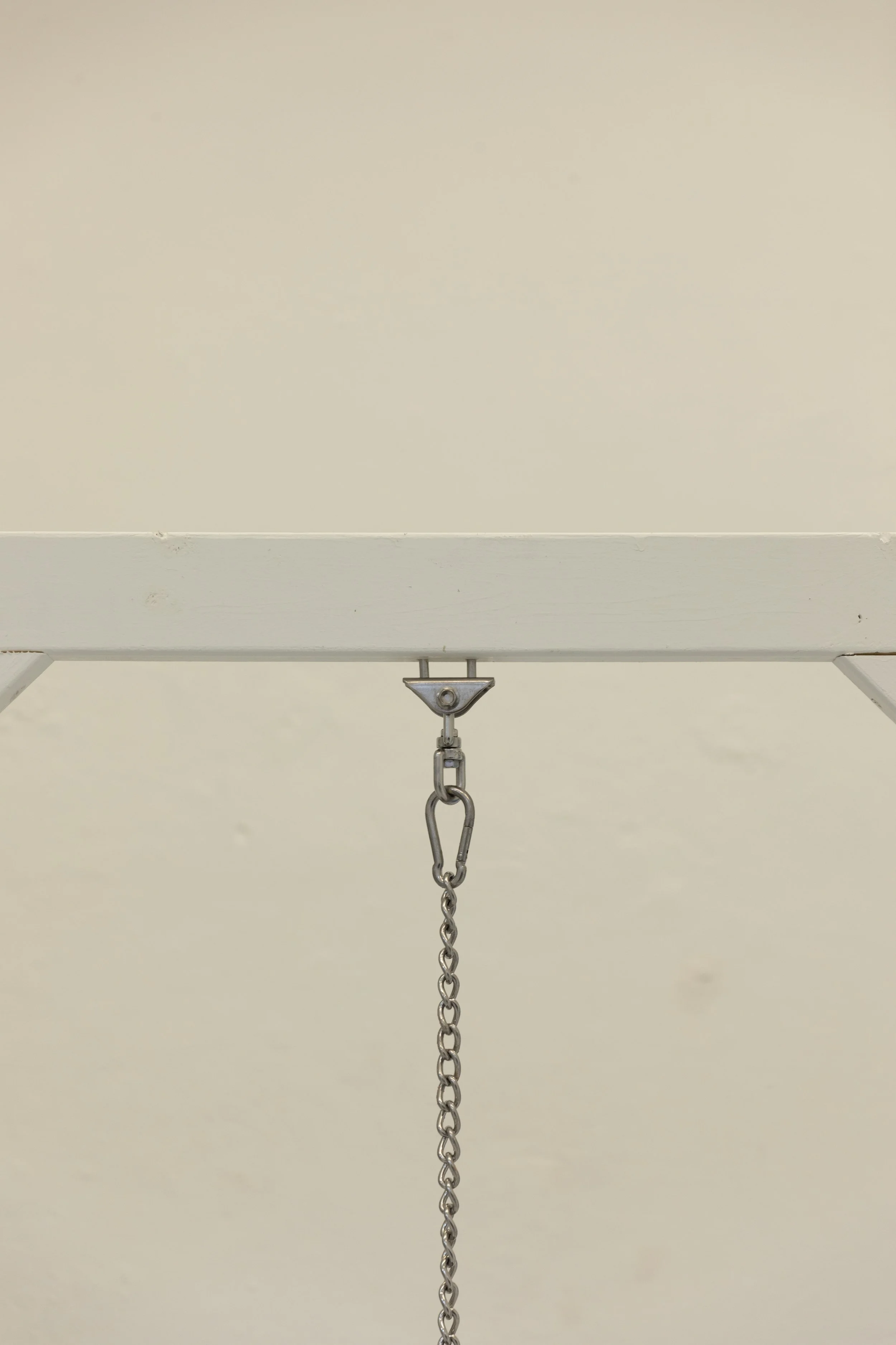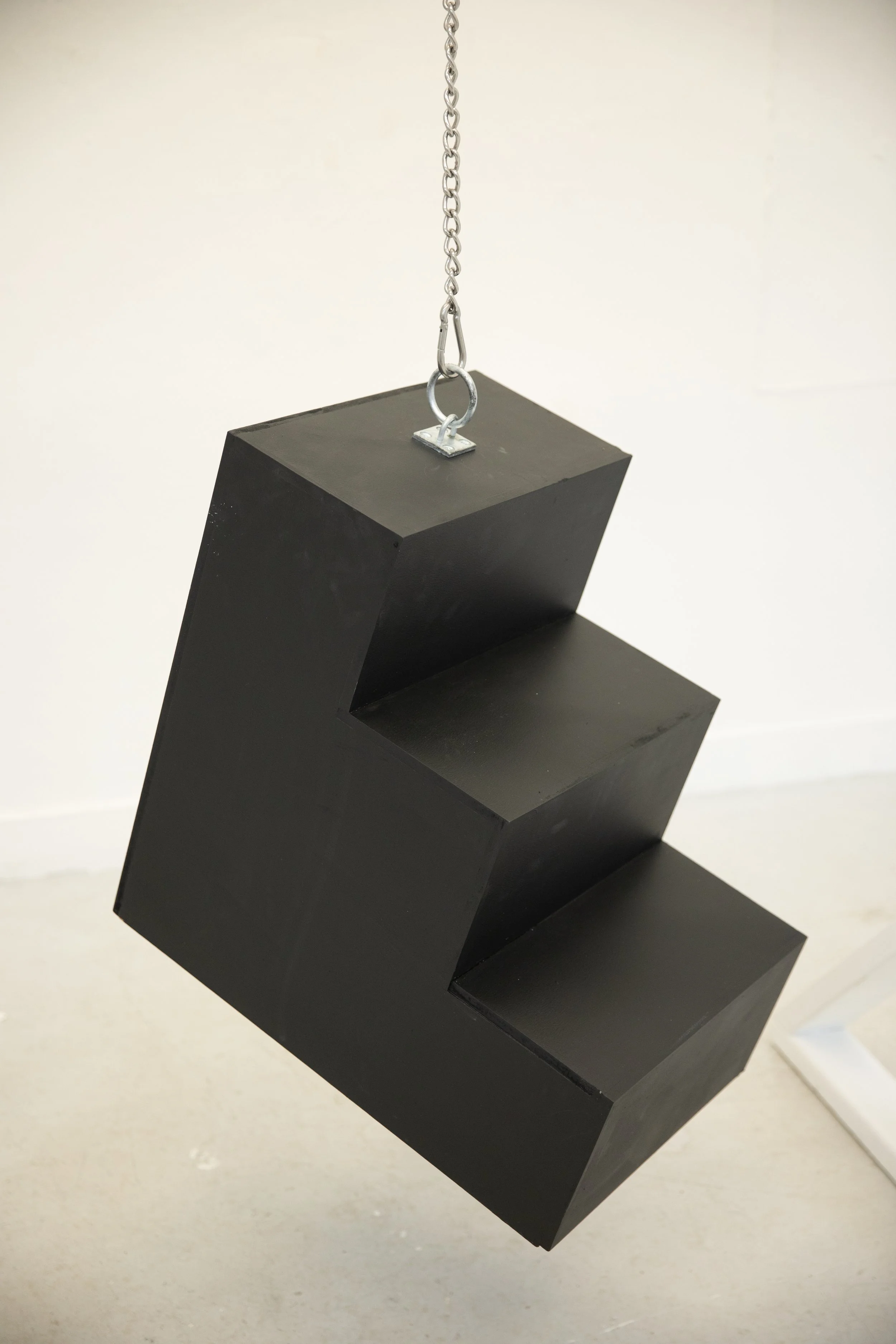 This art installation is a reflection on the contradictions and conflicts between tradition and modernity. The white shelf resembles a guillotine, symbolising punishment and sacrifice in traditional culture, while the black three-step platform represents technology and progress in modern society. By combining the two, the artist is perhaps trying to express a reflection on whether we have lost sight of the value of traditional culture in the rapid development of modern society, and whether modern technology and progress can really replace the wisdom and value that tradition brings.